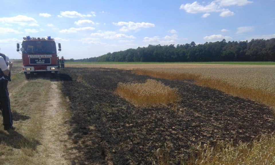 Am gestrigen Nachmittag fing ein Getreideacker zwischen Eichfeld und Rimbach Feuer. Dank der schnellen Notrufmeldung und des sofortigen Eingreifens der Feuerwehren konnte das Feuer schnell gelöscht werden. Als örtlich zuständige Feuerwehr übernahmen wir den Erstangriff und löschten die offenen Flammen mithilfe unserer Hochdrucklöschanlage. Die beiden wasserführenden Fahrzeuge der Volkacher Wehr kümmerten sich um die Nachlöscharbeiten. Final wurde der Acker mit einer Wärmebildkamera auf weitere Glutnester kontrolliert. Der gemeinsame Einsatz konnte zügig beendet werden.